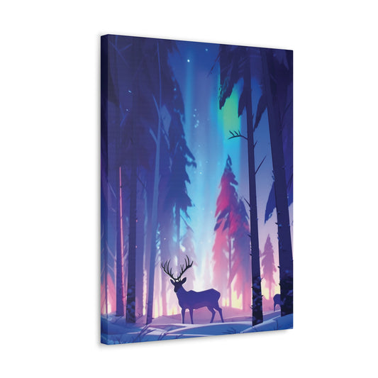 Winter Woodland with Reindeer and Dancing Northern Lights