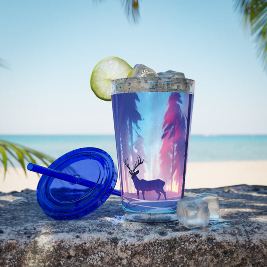 Majestic Winter Forest: Reindeer and the Northern Lights Show
