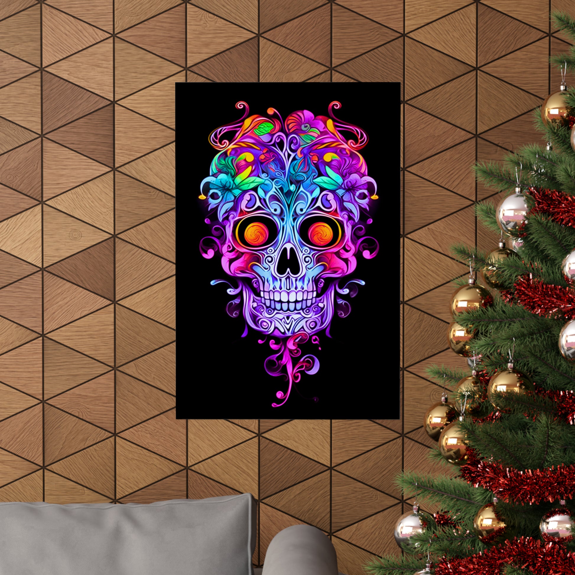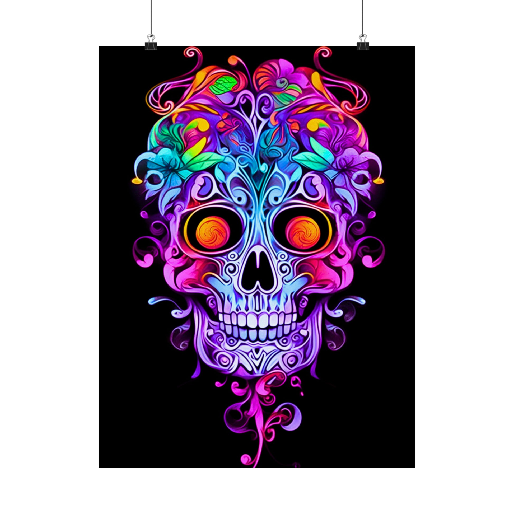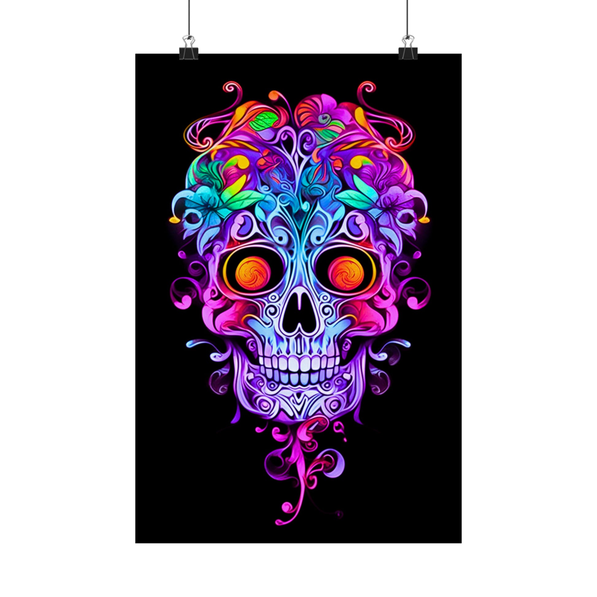 Immerse yourself in the enchanting world of Art Nouveau with our exquisite neon sugar skull. Adorned with intricate vines and ornate filigree, this captivating masterpiece combines the elegance of Art Nouveau with a vibrant neon twist. Discover the allure of this unique design that seamlessly blends tradition and modernity.