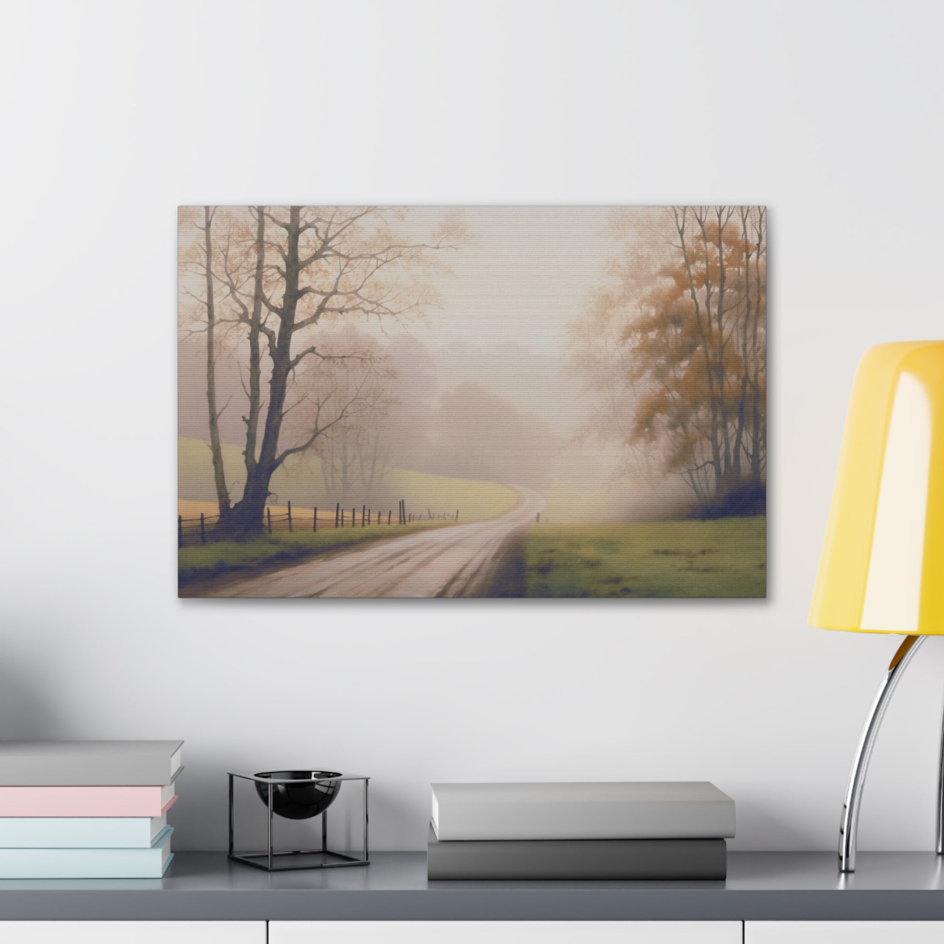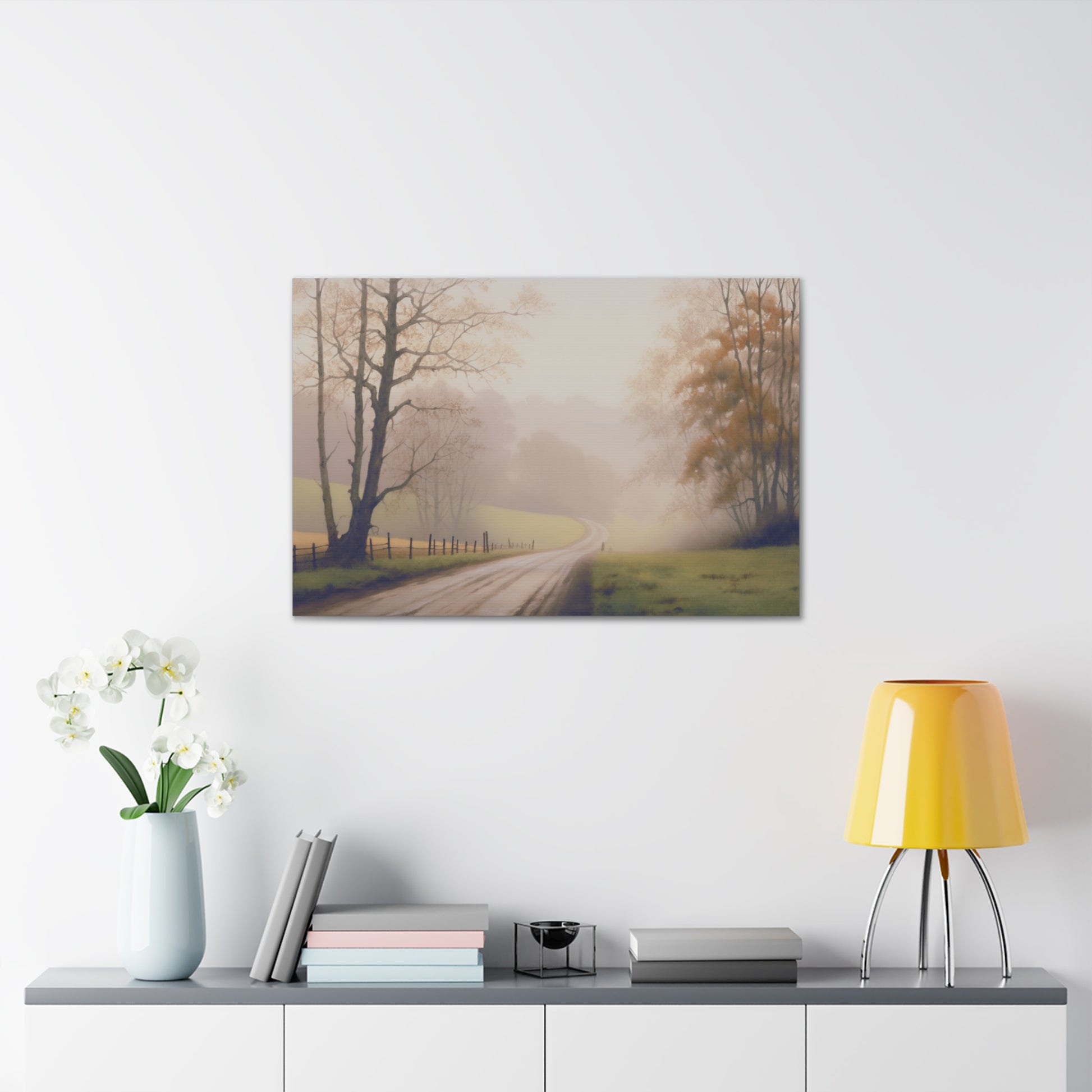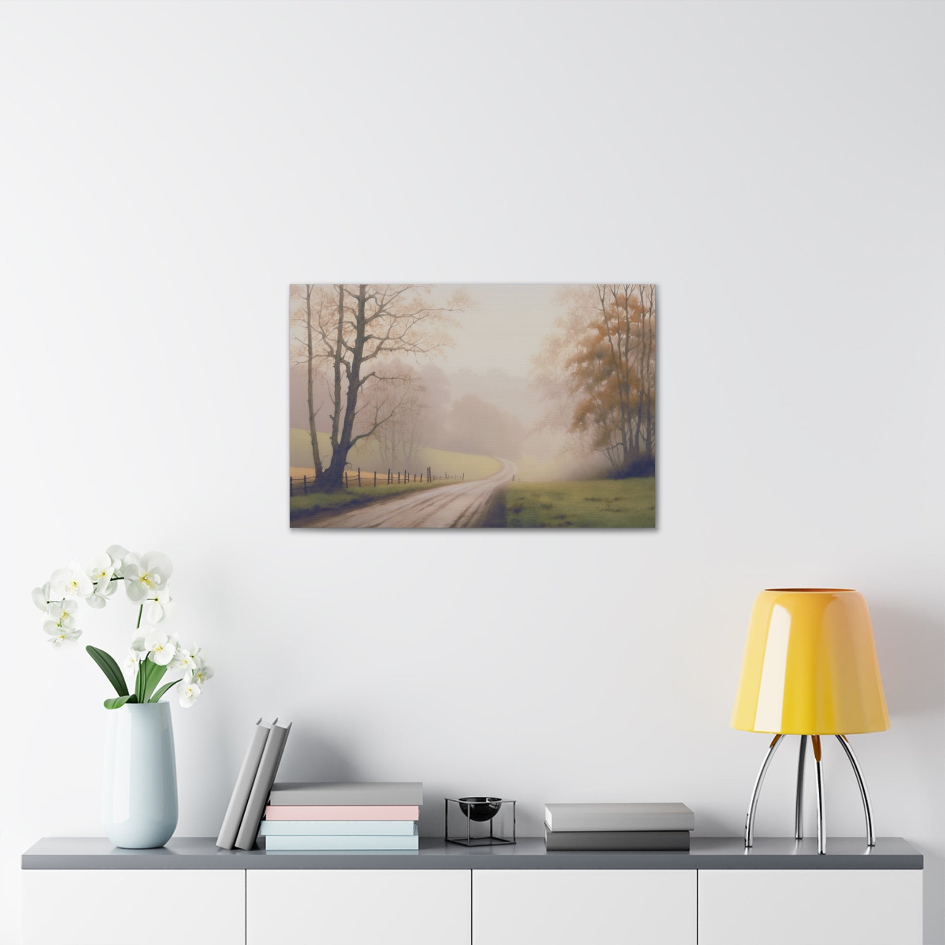 Immerse yourself in the serene beauty of a misty autumn morning in the countryside. Our captivating wall art transports viewers to rolling hills blanketed in ethereal fog, where tall trees emerge mysteriously from the mist. With meticulous attention to detail, we capture the fine elements of the landscape, from delicate dewdrops on leaves to the subtle gradations of the mist. Through soft, diffused lighting and a muted color palette, we evoke a sense of tranquility that resonates with the essence of the fall season. Experience the peaceful allure of nature's beauty in your own space with this evocative wall art design.