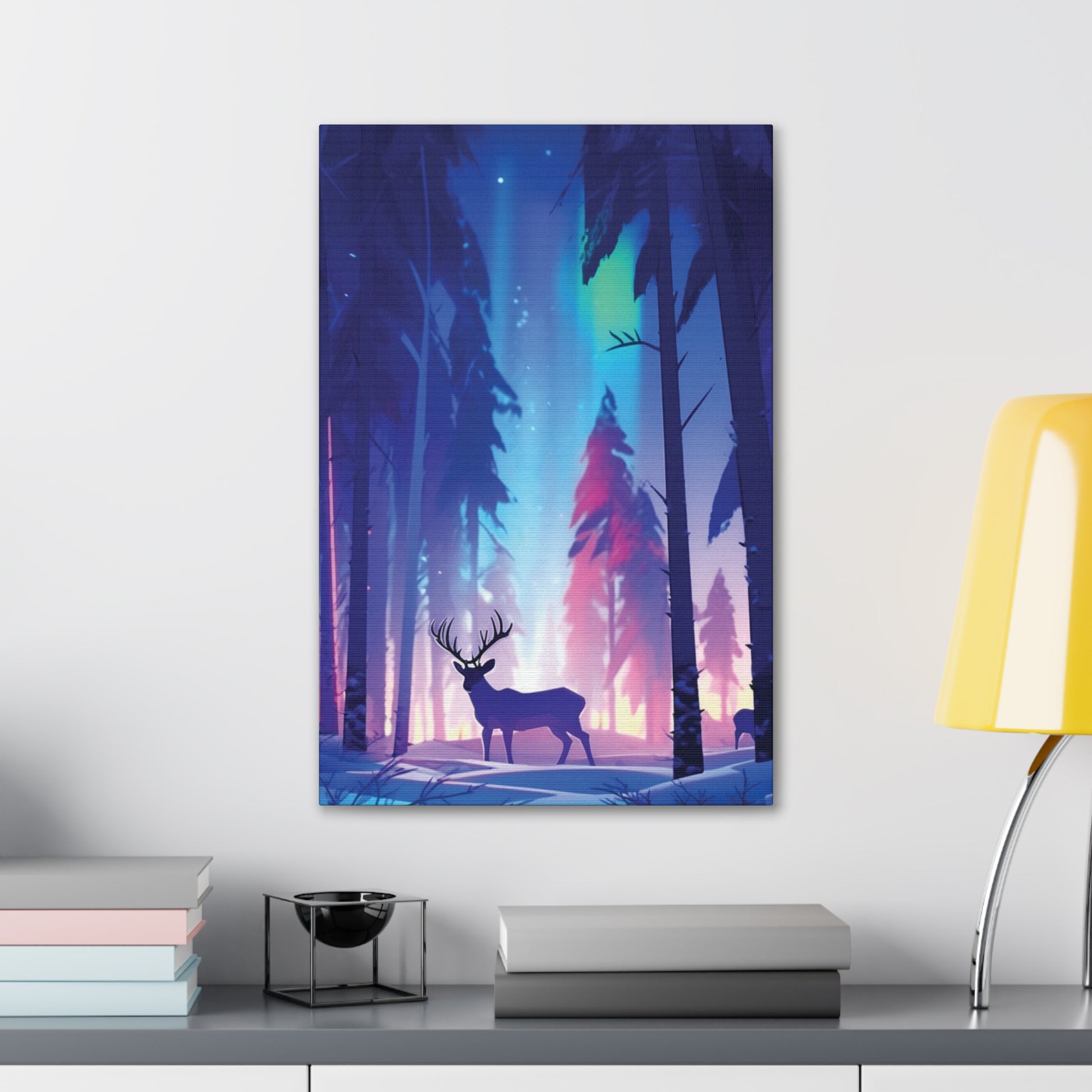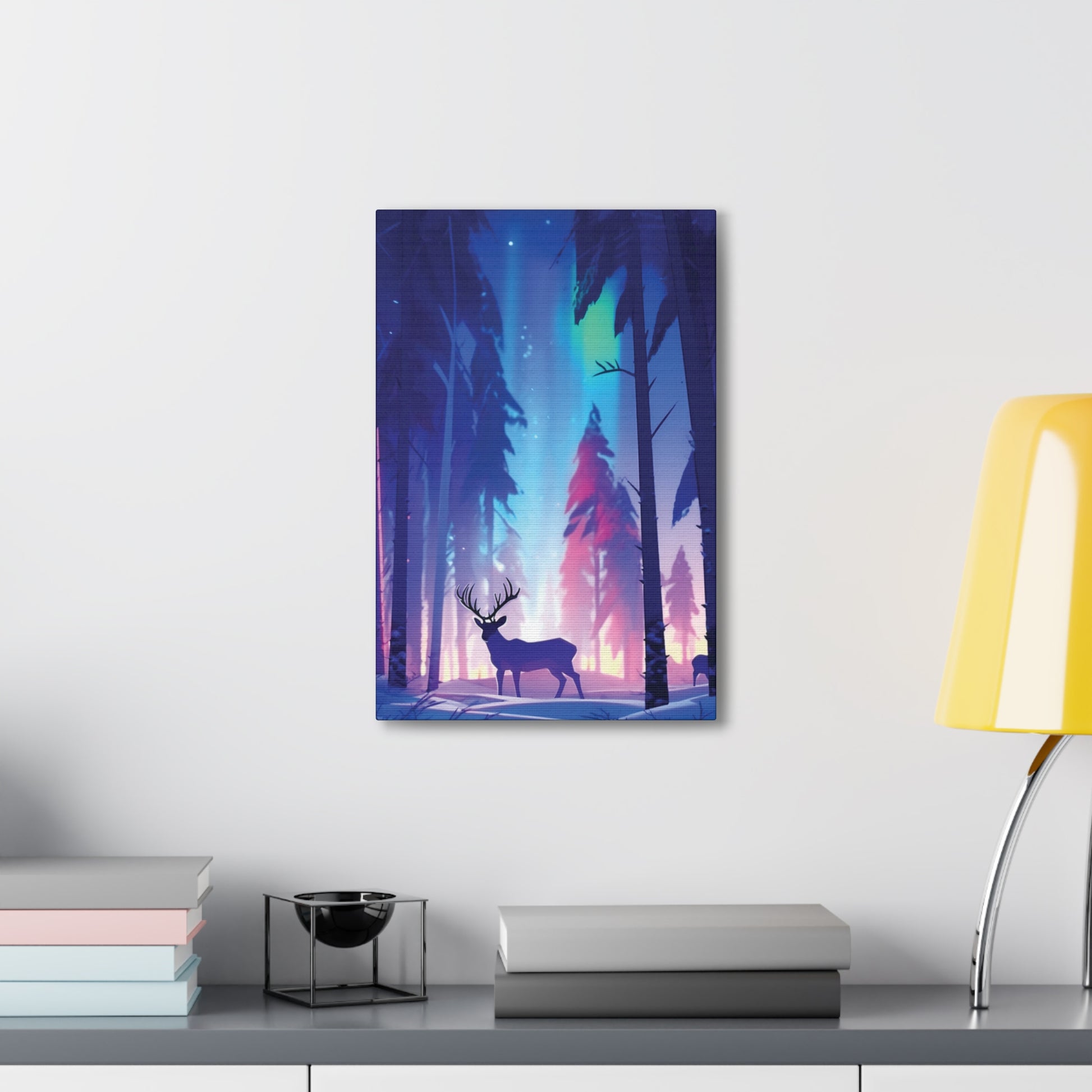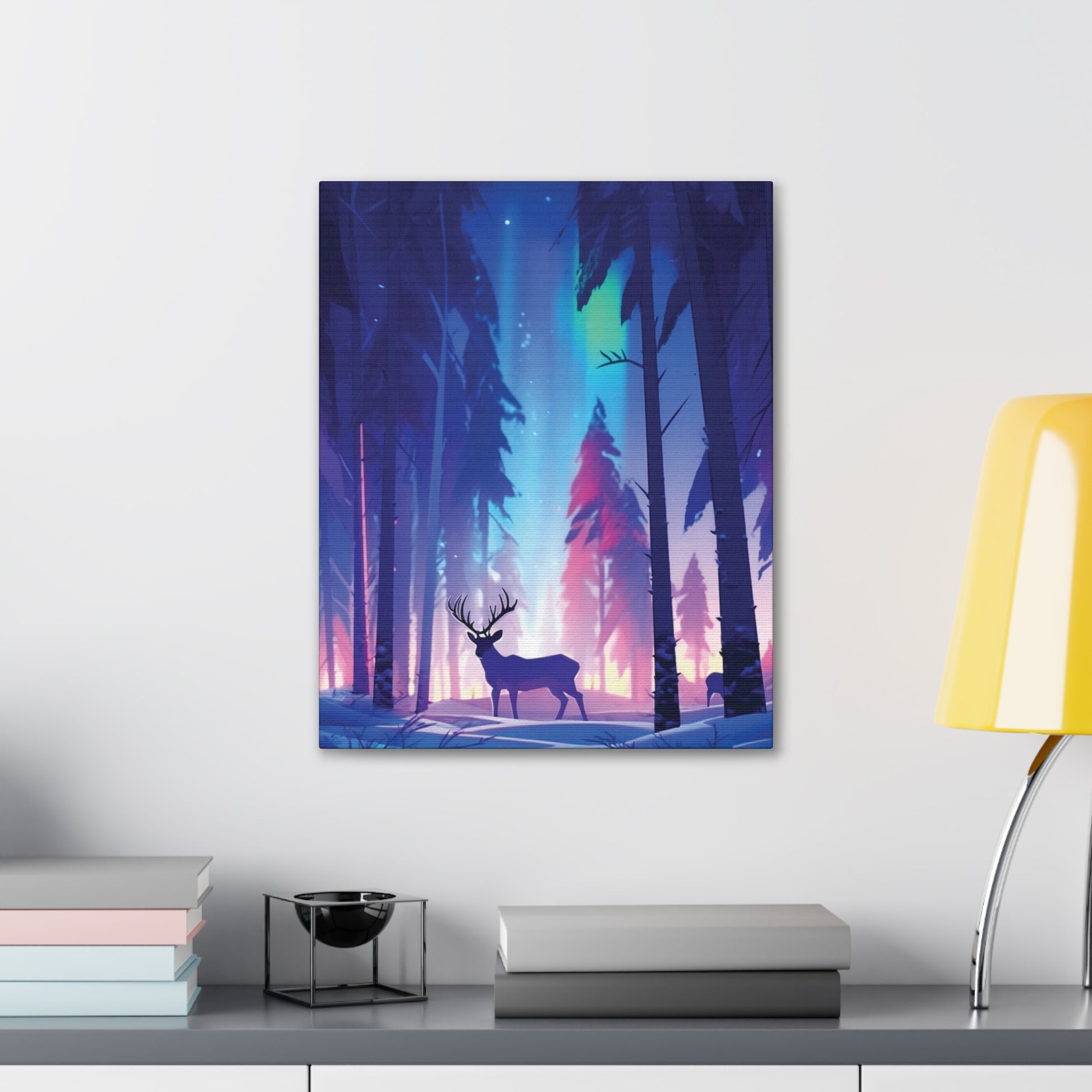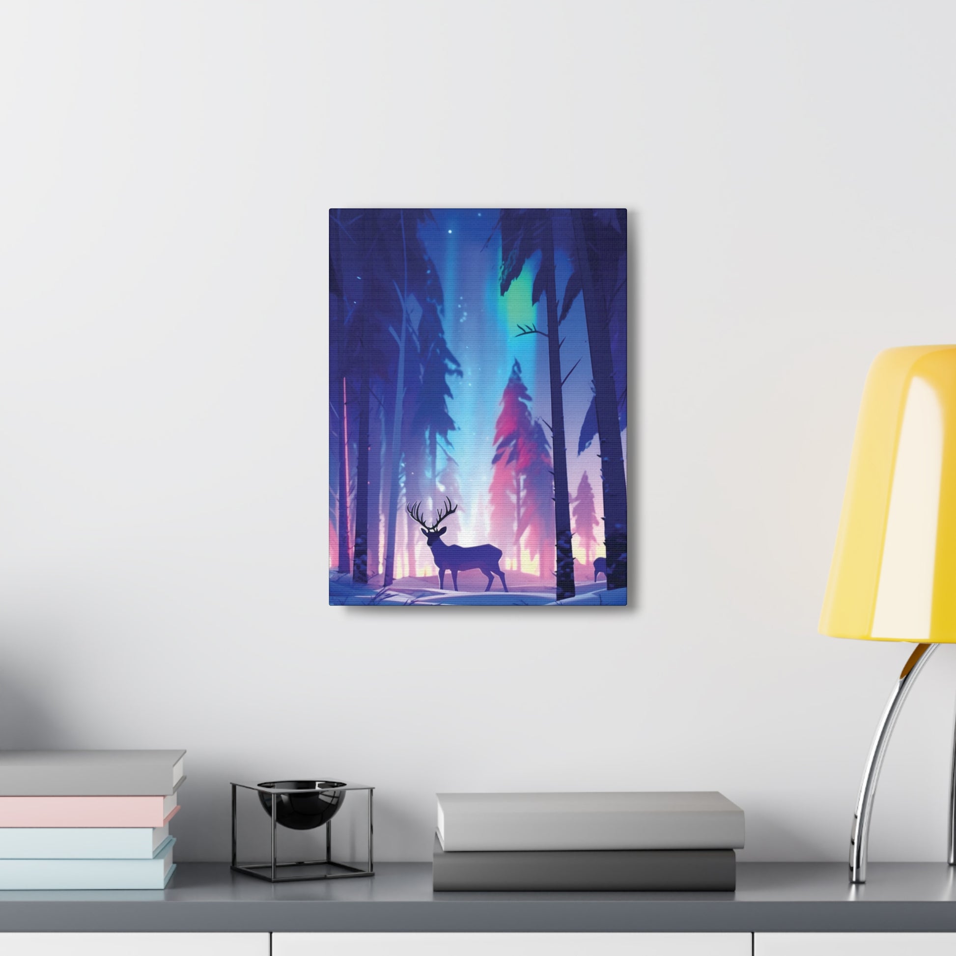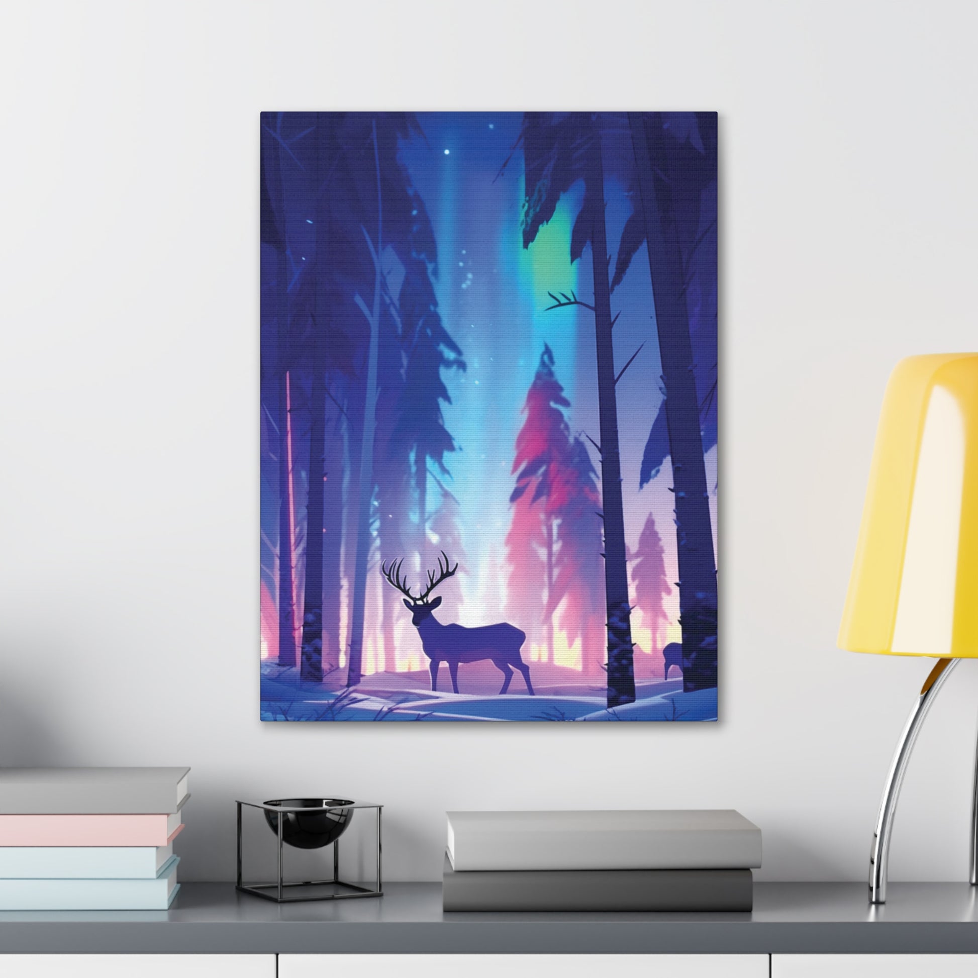 Step into a tranquil winter woodland where graceful reindeer roam beneath the mesmerizing dance of the Northern Lights. Experience the enchantment of nature's beauty under the Arctic night sky.