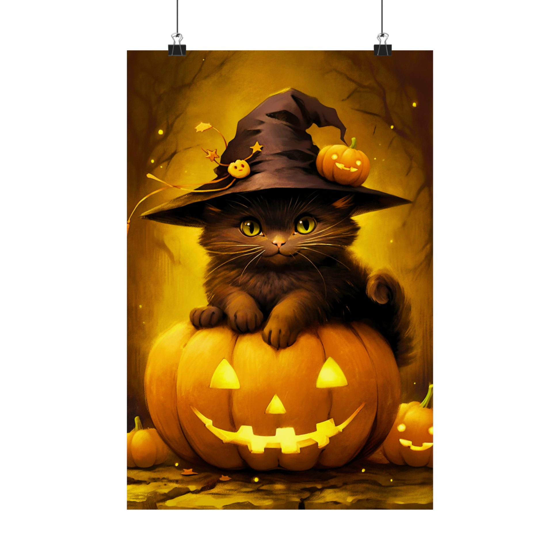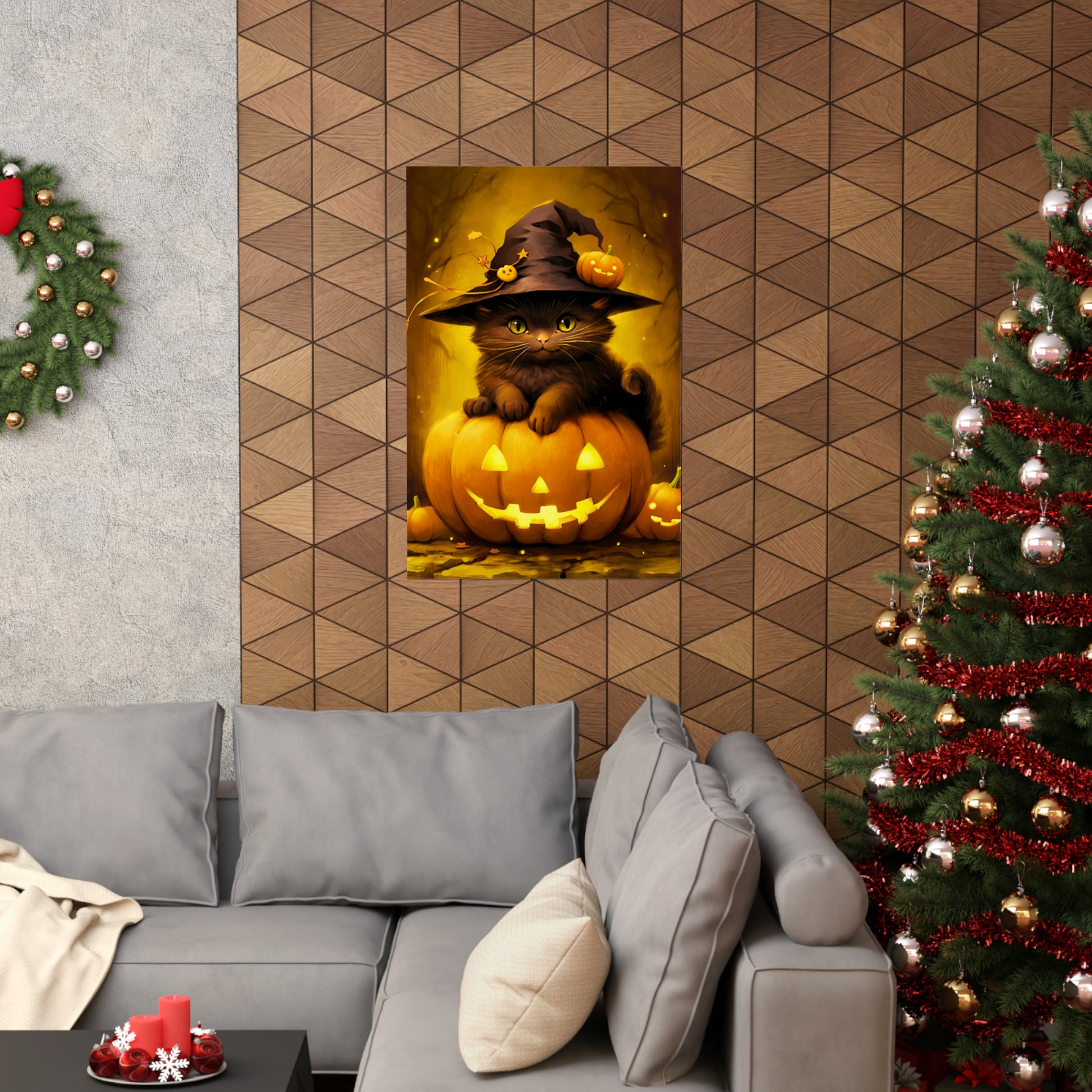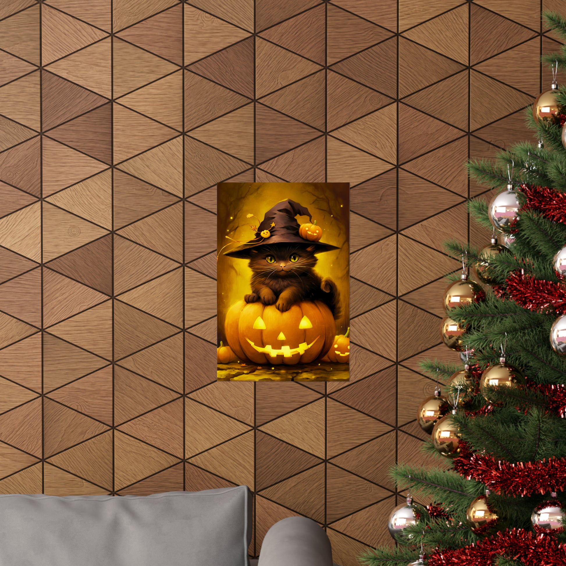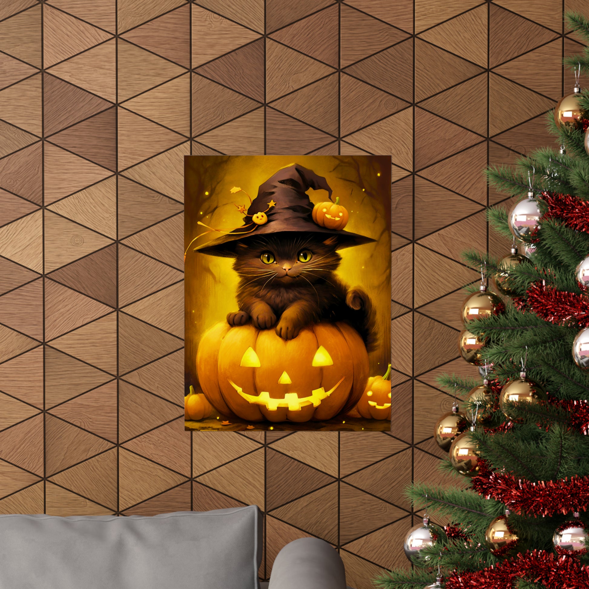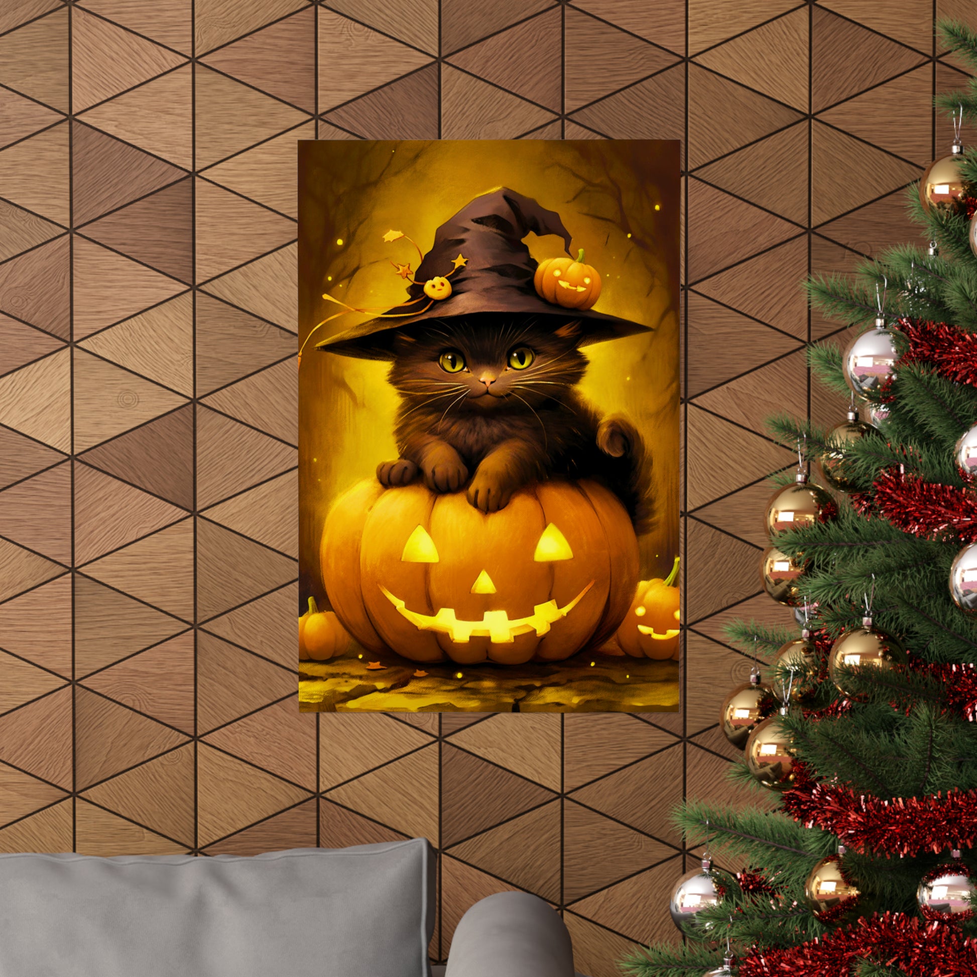 Whimsical Cat Jack-o'-Lantern: Playful Halloween Décor Poster